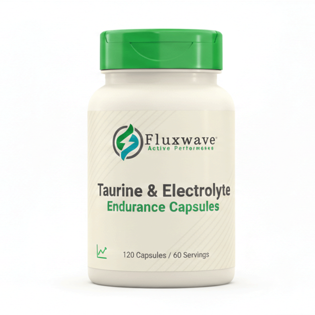 Taurine & Electrolyte Endurance Capsules provide continuous support for hydration, muscle contractility, and cellular volumization during extended training. This electrolyte-dense formula may support proper fluid balance and nerve transmission, might reduce exercise-induced cramping, and may enhance taurine-mediated cell hydration. With sodium, potassium, magnesium, and 1000 mg of taurine per serving, these capsules might also support cardiac function and muscular endurance.